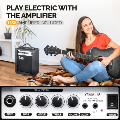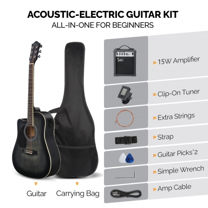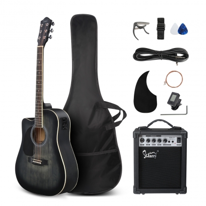 2. 【COMPLETE ACCESSORIES KIT】The all-in-one left-handed acoustic electric guitar kit includes clip-on tuner, guitar bag, strap, picks, cable, spare strings and a wrench. You don't need to buy any additional accessories. It is convenient for beginners who can use it right out of the box.