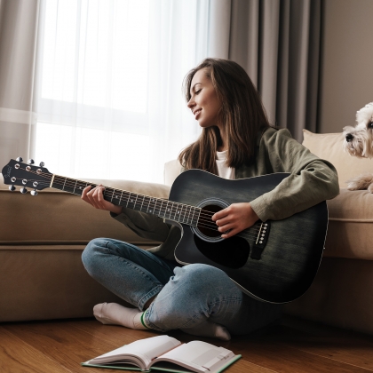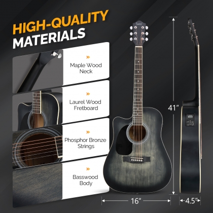 1. 【UNIQUE DESIGH】The 6 strings 41-inch left-handed acoustic electric guitar uses cutaway design - a cut at the junction of the body and neck makes the treble frets easier to reach when playing. The matte green combined with the distressed effect makes this guitar look unusual. Smooth and coherent high-bass switching coupled with eye-catching appearance will make you the most dazzling star at a party or on stage.