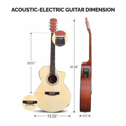 4.【FABULOUS SOUND】: The acoustic guitar with spruce body provides excellent sound effects and atmosphere for playing. With the in-built tuner, you can easily adjust the tone to your desired level and create your own beautiful music.