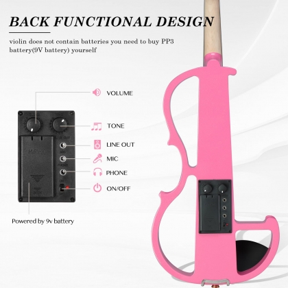 3. Precise Tuning: The electric violin has a built-in high-precision electronic tuning system, which can be quickly adjusted to the ideal pitch with one button to ensure the accuracy of each performance. The electric violin does not contain batteries and need to purchase PP3 batteries (9V batteries) yourself.
