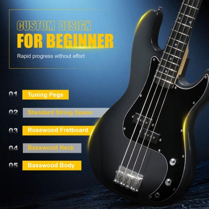 Made with naturally dried solid basswood body, maple neck and rosewood fingerboard, this bass guitar is built to last. The quality tonewood interstitial structure is uniform and dense, ensuring it won't crack or deform easily. The polished surface adds a shiny touch that can withstand years of wear and tear.
