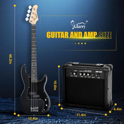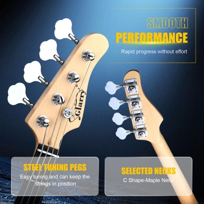 Get a Glarry bass guitar and enjoy high-quality sound and durability. At Glarry, our goal is simple: to provide beginner musicians with the best possible instruments from day one. Whether you're a beginner or an experienced player, this guitar's modern design and versatile sound make it perfect for anyone. Each guitar is made with precision craftsmanship and comes with a gift package. Order yours now and start making beautiful music with a guitar that will last a lifetime.